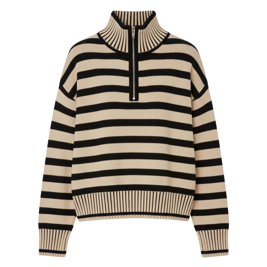 Gestreifter Pullover mit Viertelreißverschluss für Frauen